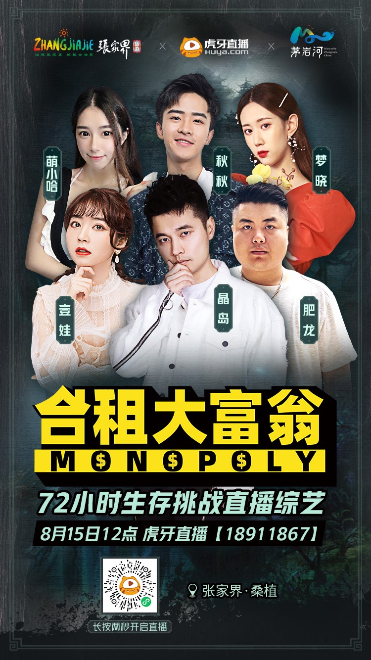 8月15日起,房间号:18911867 张家界市第二届网红直播旅游节暨虎牙直播《合租大富翁》特别篇“天选之途“精彩上线,点进来,决定TA的命运。