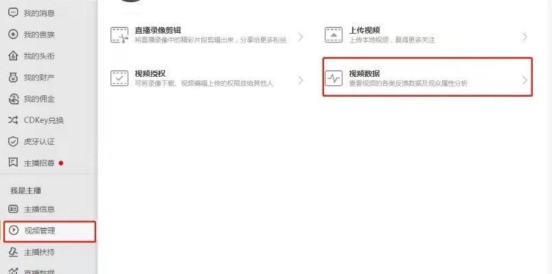 电脑端:网页端进入虎牙个人中心https://i.huya.com/,点击“视频管理”,选择“视频数据”,再点击“直播视频”即可查看当天直播回放,然后将截图上传至开播信息收集表中即可;