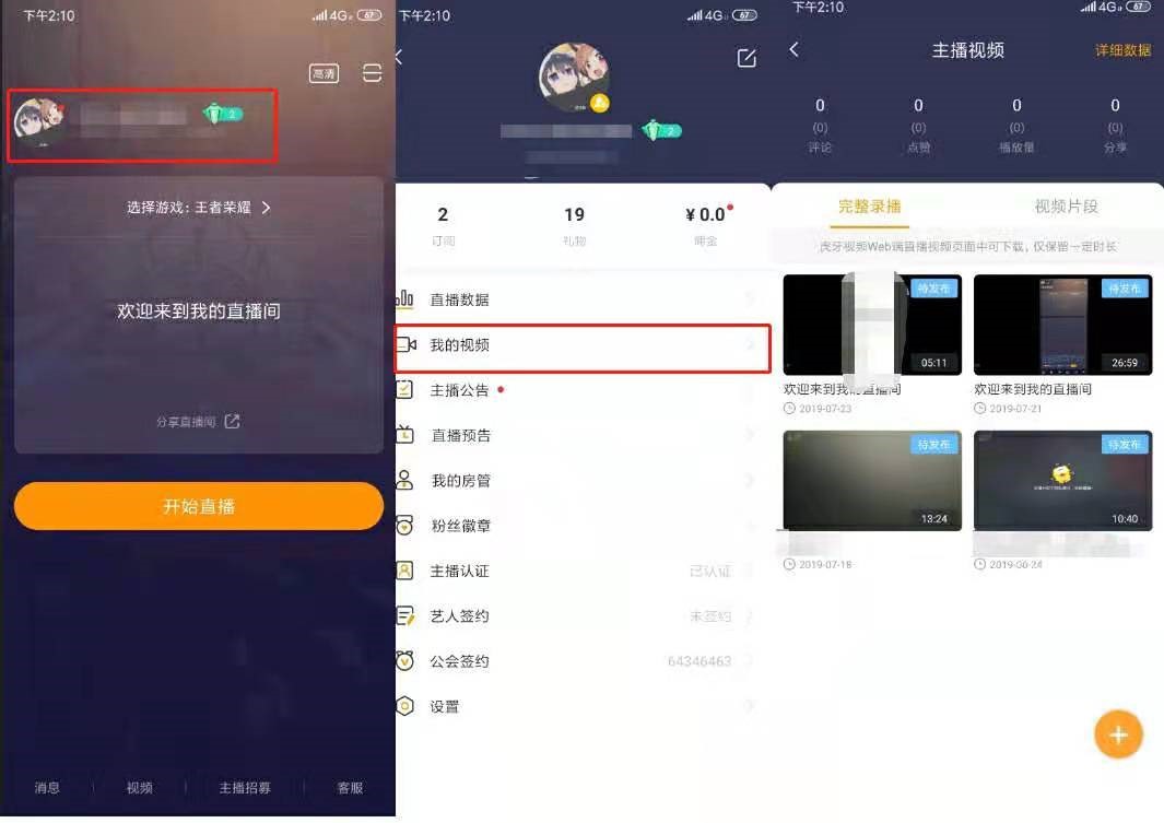 手机端:进入虎牙手游APP,点击头像进入个人信息界面,选择“我的视频”查看,并截图上传至表格中即可。