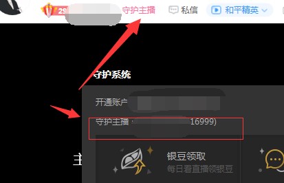 从电脑网页进入自己直播间,点击守护主播查看自己的虎牙号,如下图所示: