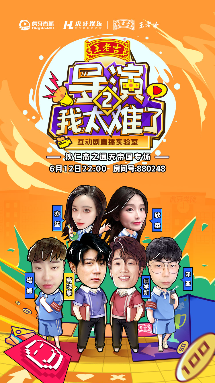 虎牙互动剧直播室《导演!我太难了2》第5期狄仁杰专场,将继续加大创意游戏和惩罚的力度,并继续演绎高潮迭起的精彩剧情!本期MC由相声界的全能艺人高晓攀和主持人闫学新担任,人气主播塔姆、泽亚,亦笙,欣童将为水友们诠释一场全新大戏。