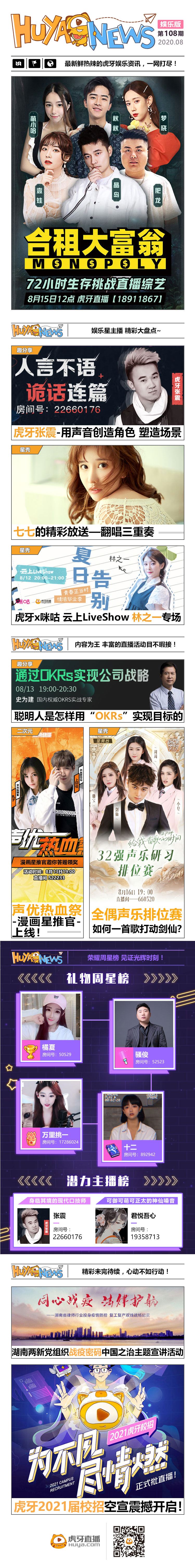 虎牙娱乐周刊108期 合租大富翁再来袭