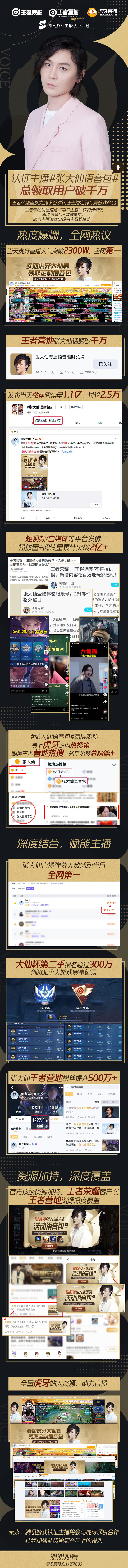 未来,腾讯游戏与王者荣耀项目组也期待与更多的“张大仙”深度合作,联手虎牙等合作直播平台共同探索与创建新模式、新产品、新玩法,帮助游戏直播生态变得更加强大。