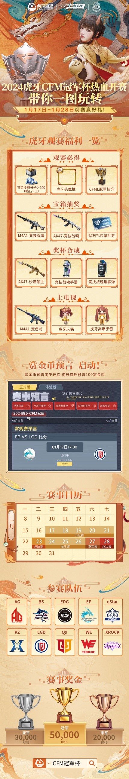 1月17日-1月28日,2024虎牙CFM冠军杯即将热血开战!