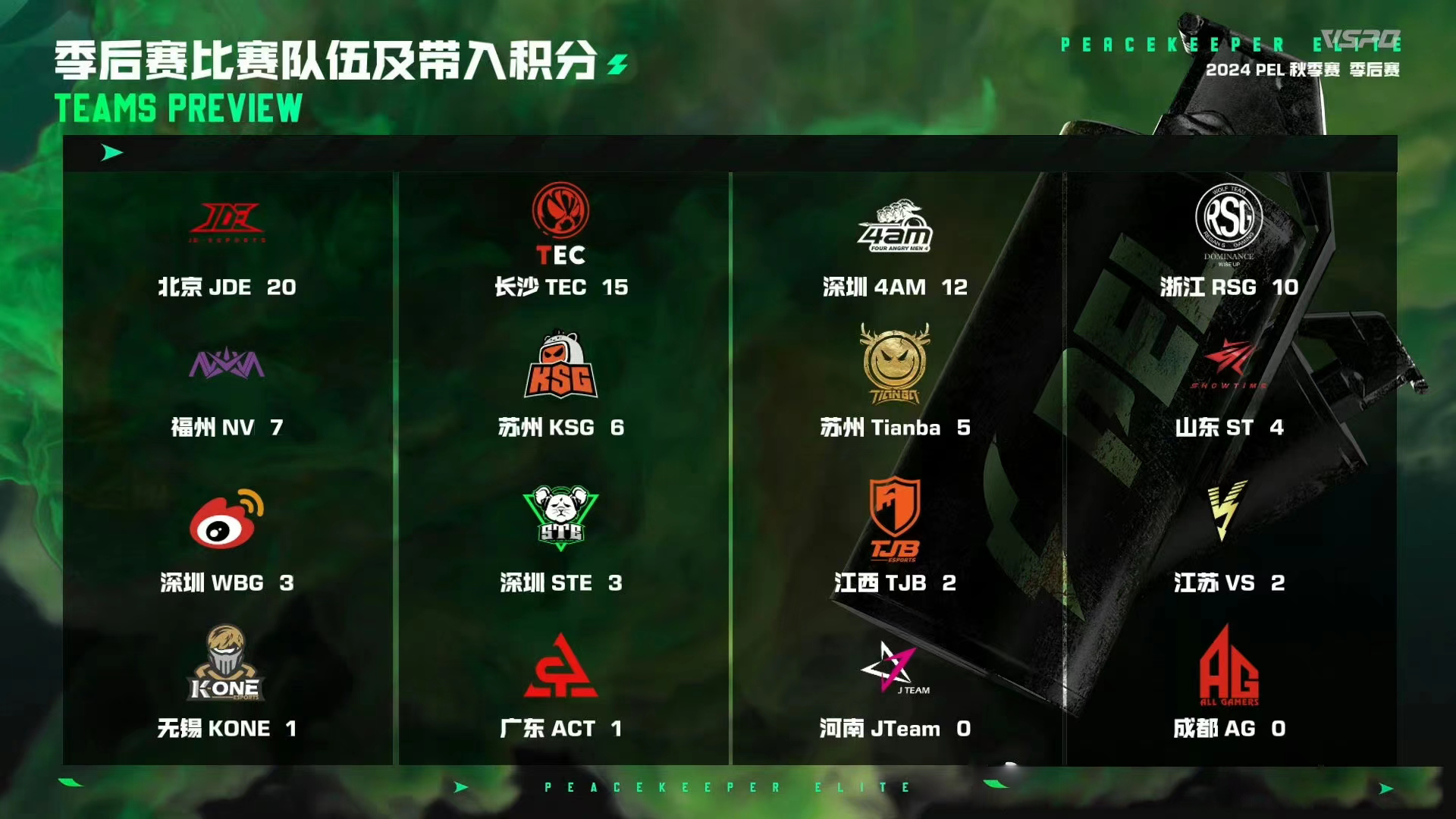 9月26日-9月29日,2024和平精英PEL秋季赛季后赛战火重燃,16支队伍蓄势待发,每一枪都关乎胜败,每一步都逼近巅峰,一起来见证传奇的诞生,关注虎牙赛事官方直播间:660006,我们不见不散!