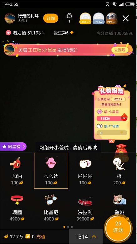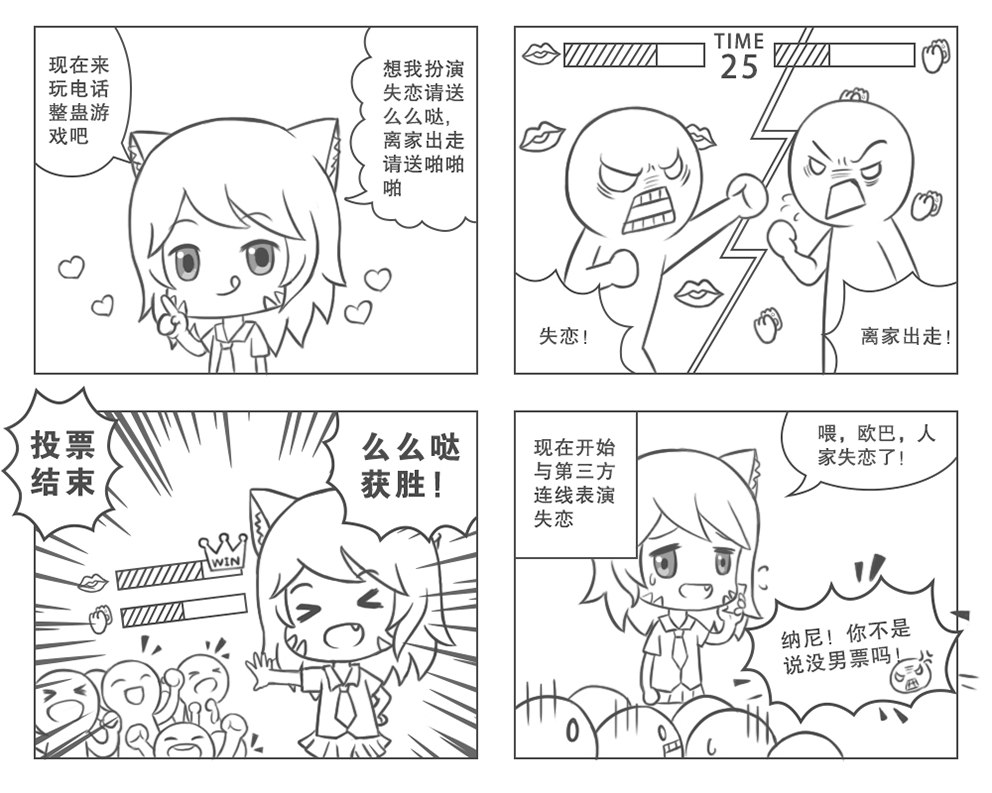 玩法:开启礼物投票,投票项目写任何可扮场景,例:失恋/离家出走,观众送么么哒/啪啪啪投票,投票计时结束后一方获胜,主播需扮演对应场景,连线陌生人或朋友开始表演(尽可能不露馅)。